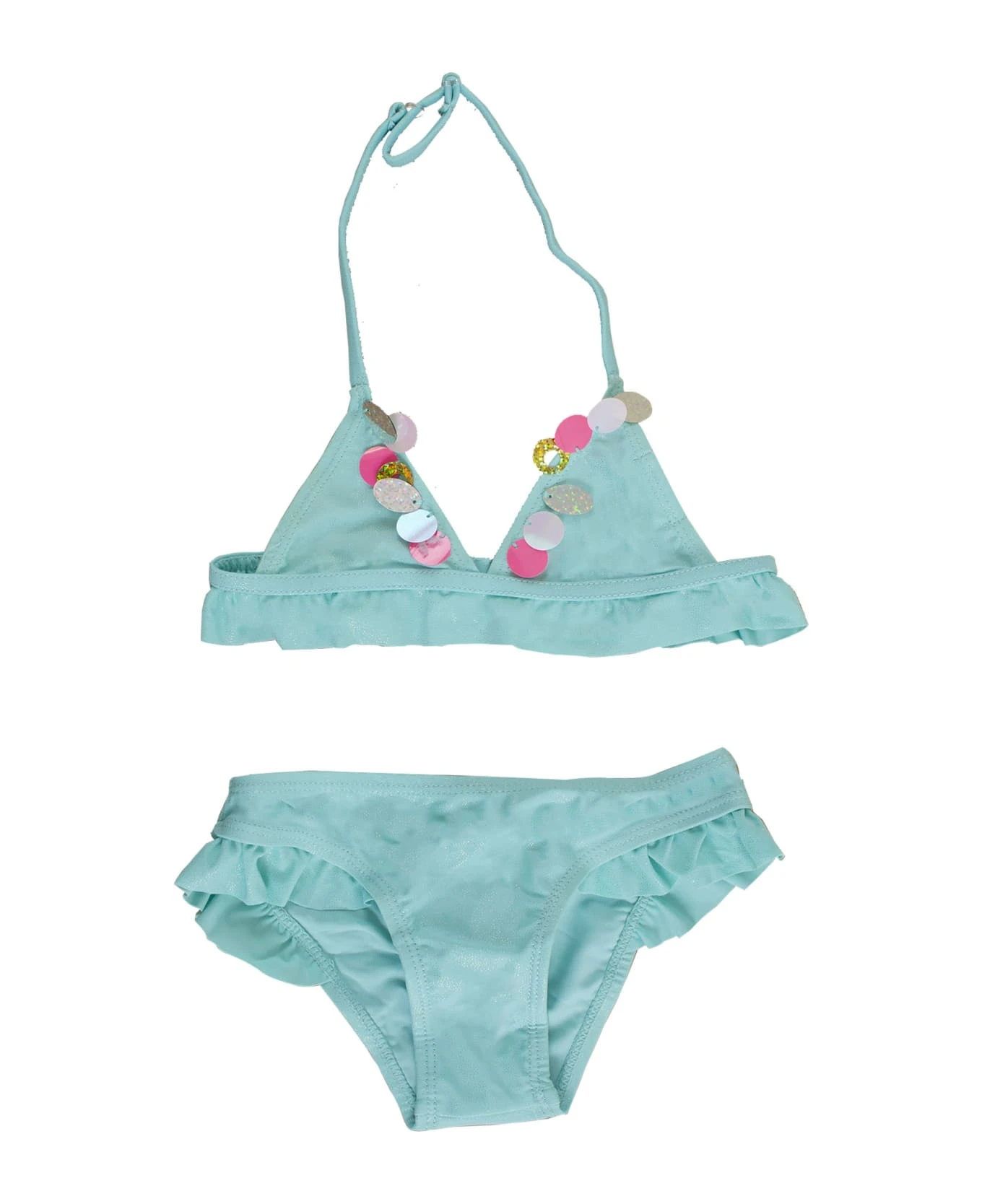 Ruffled Bikini from Billieblush Kids: Azure Ruffled Bikini with ruffled design, spaghetti strap and solid color