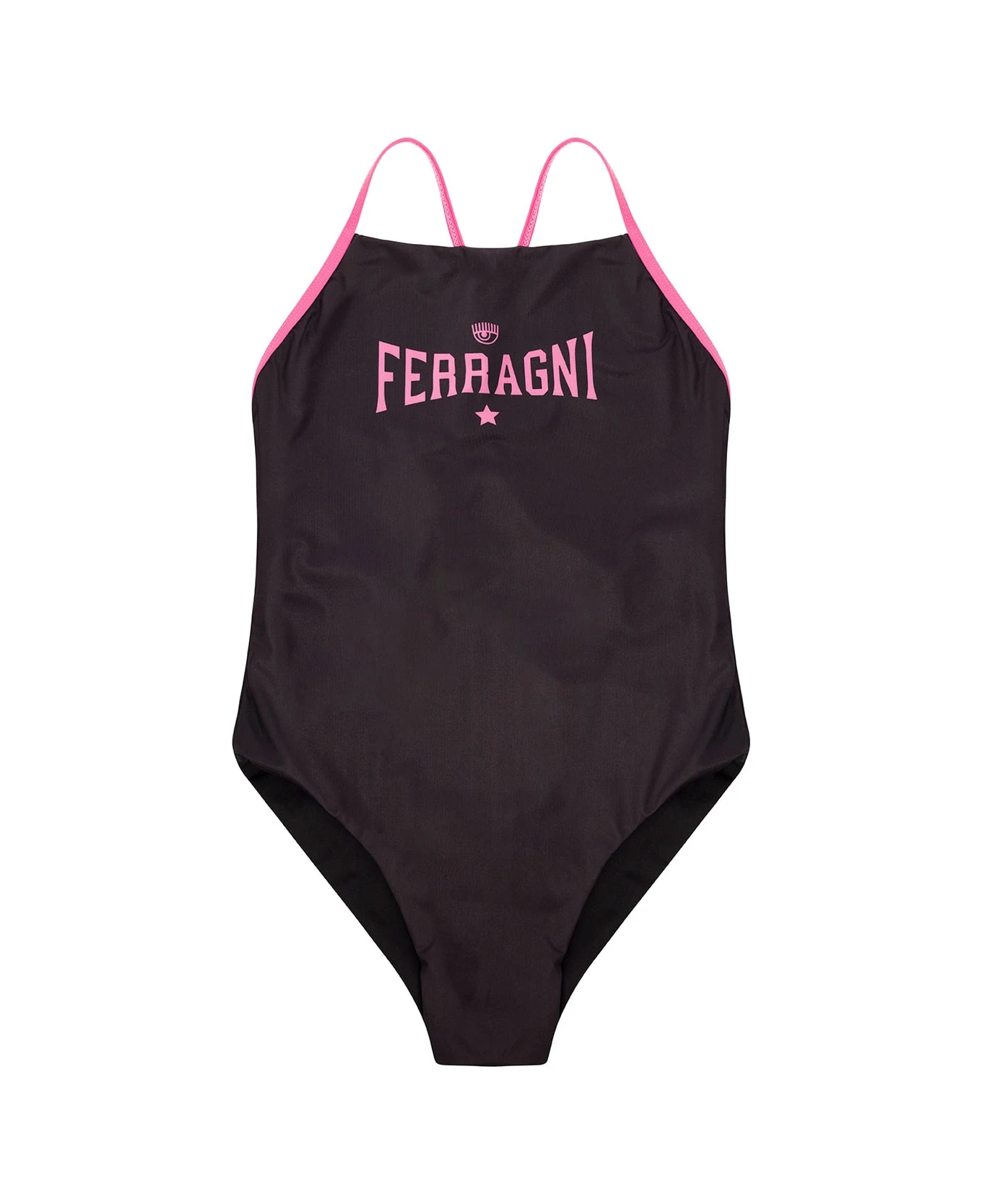Chiara Ferragni Brown Swimsuit With Logo Print On The Front In Stretch Polyester Woman