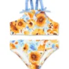 Green swimsuit girl. Logo patch, round neckline, cut-out detail and back buckle closure. Polyester 92%, Spandex/Elastane 8%