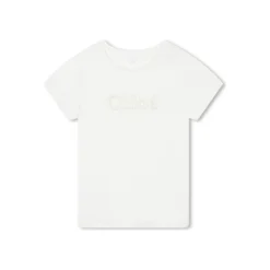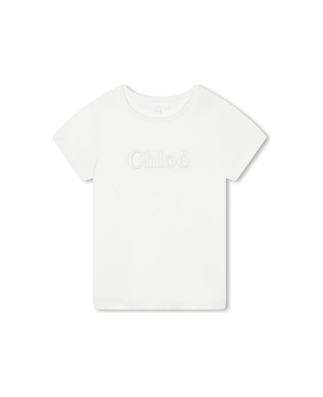 Chlo ids t-shirt made of white organic cotton and featuring a round neckline, short sleeves and a Chlo ogo embroidered on the chest.