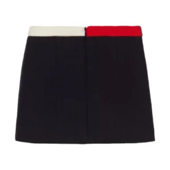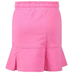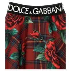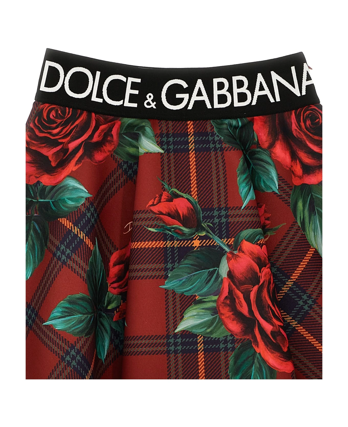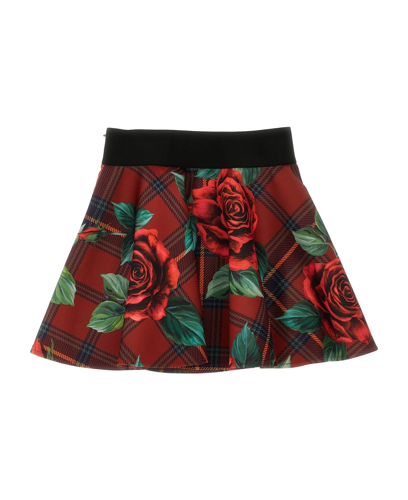 ‘Back to school’ skater-style skirt with logo elastic waistband, tartan print and roses.