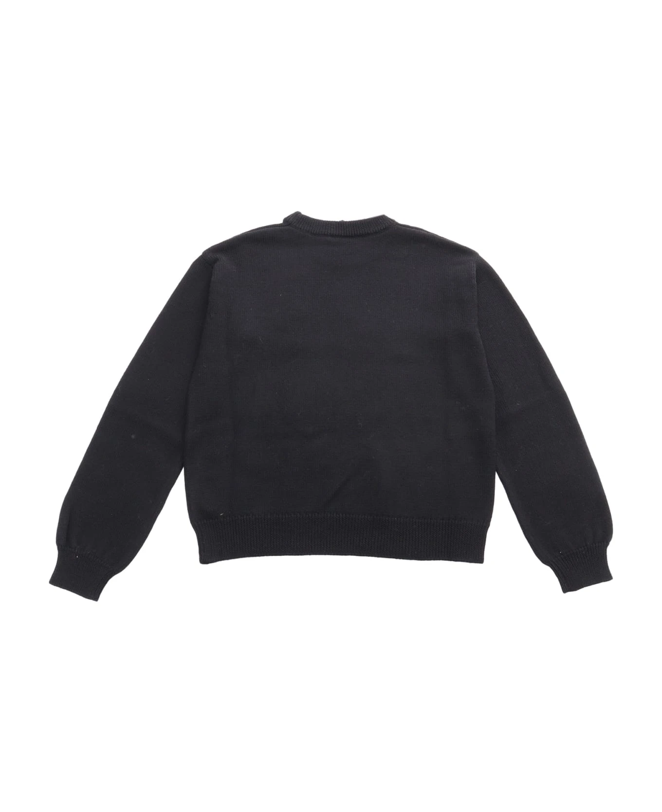 Virgin wool pullover, round neck, contrasting logo inlay, ribbed edges