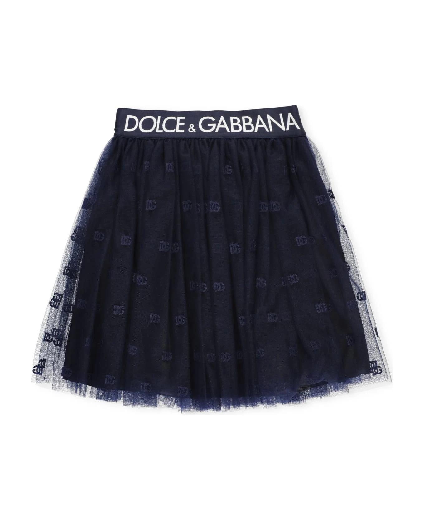 Tulle Skirt With Monogram from Dolce & Gabbana: – Blue Dolce & Gabbana tulle skirt for girl