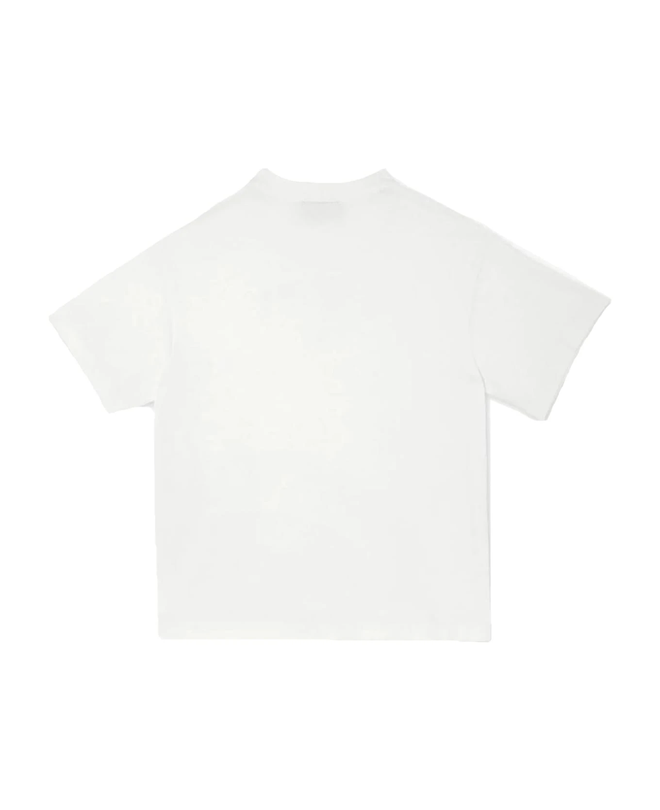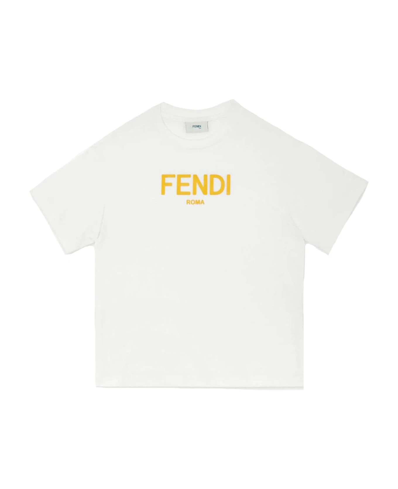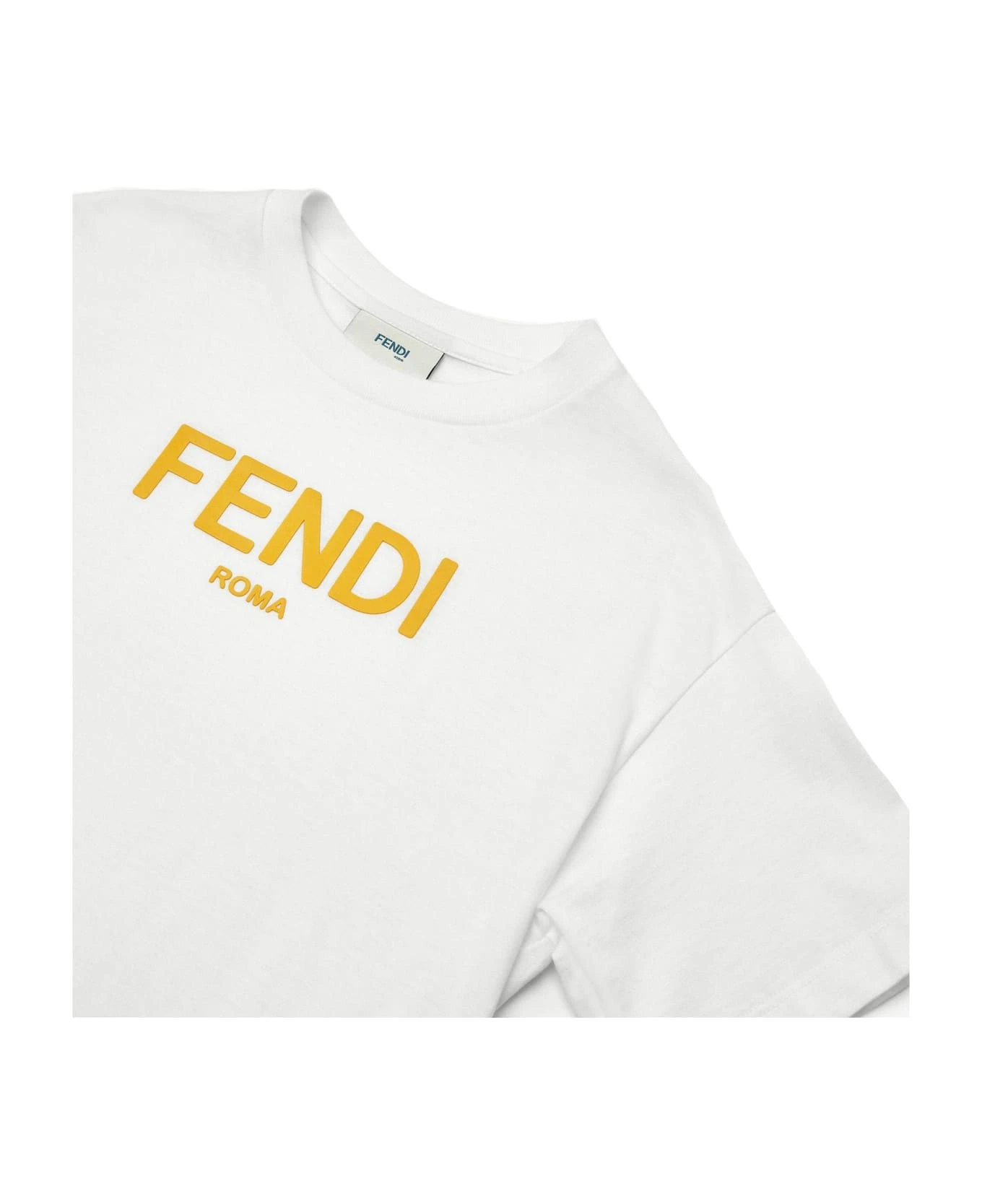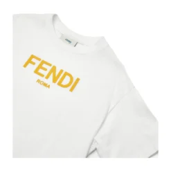 Baby T-shirt in white jersey with light blue Fendi Roma print and press stud opening.
