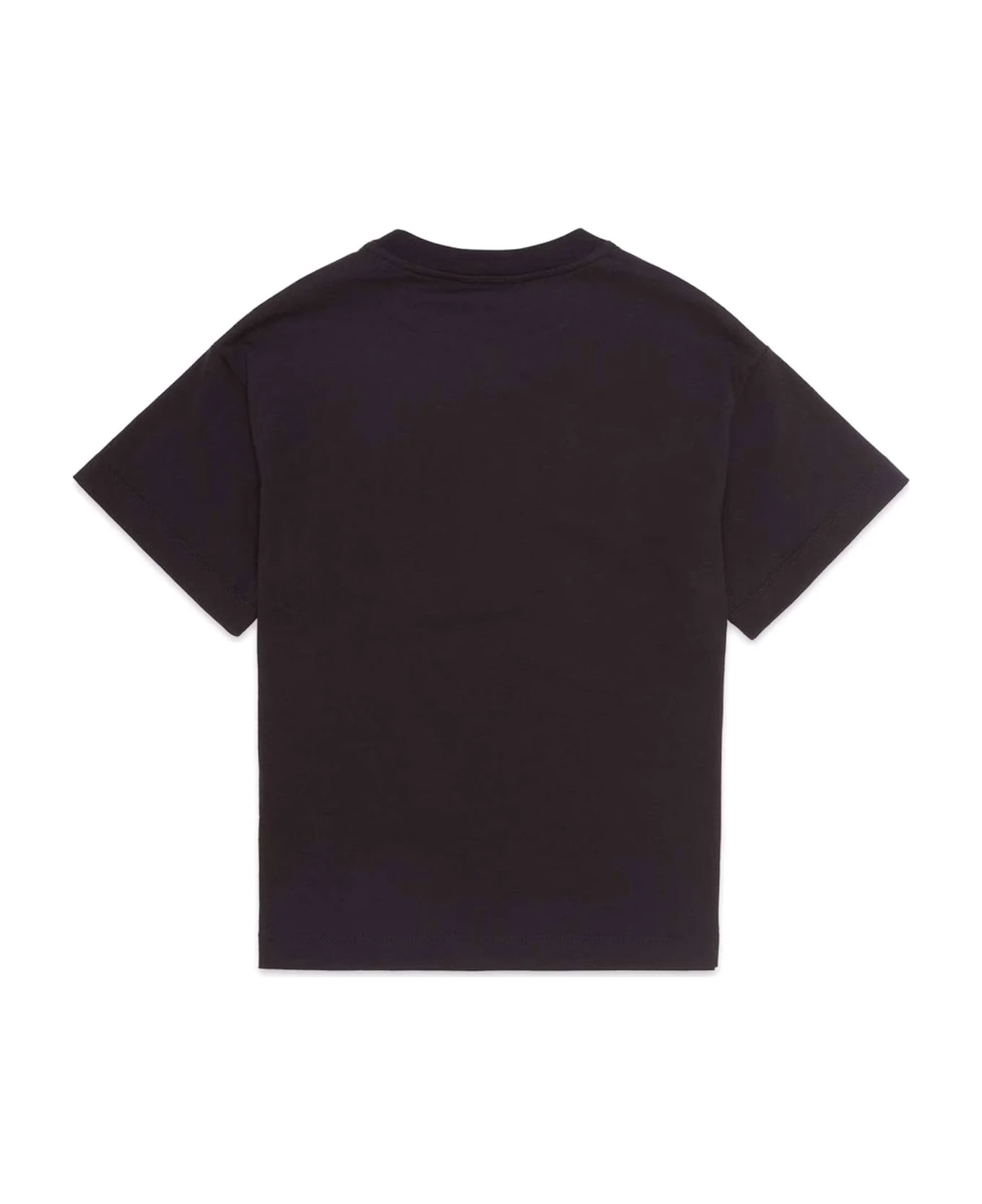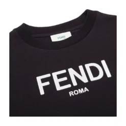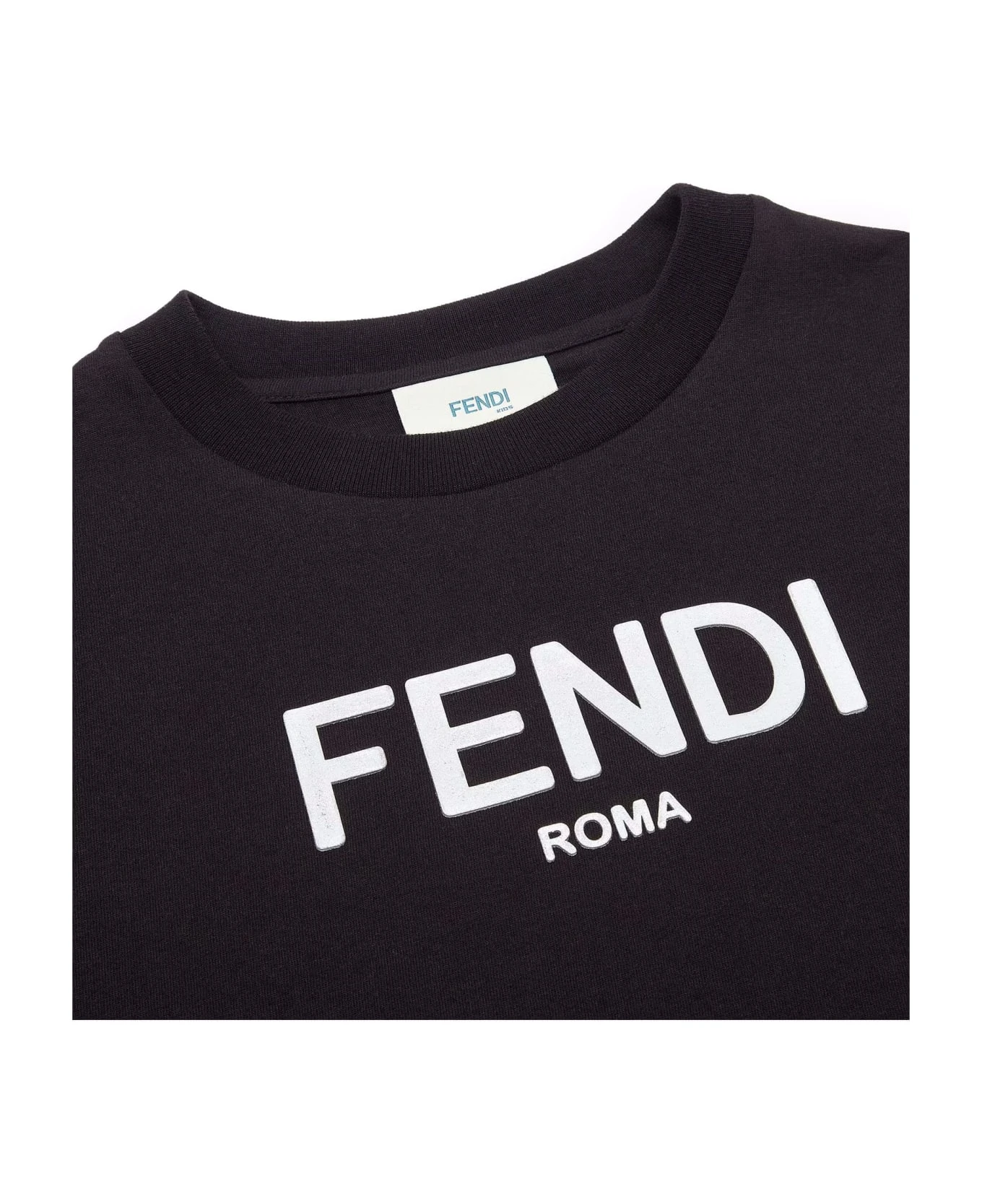Short-sleeved black jersey junior T-shirt with silver Fendi Roma print on the front.