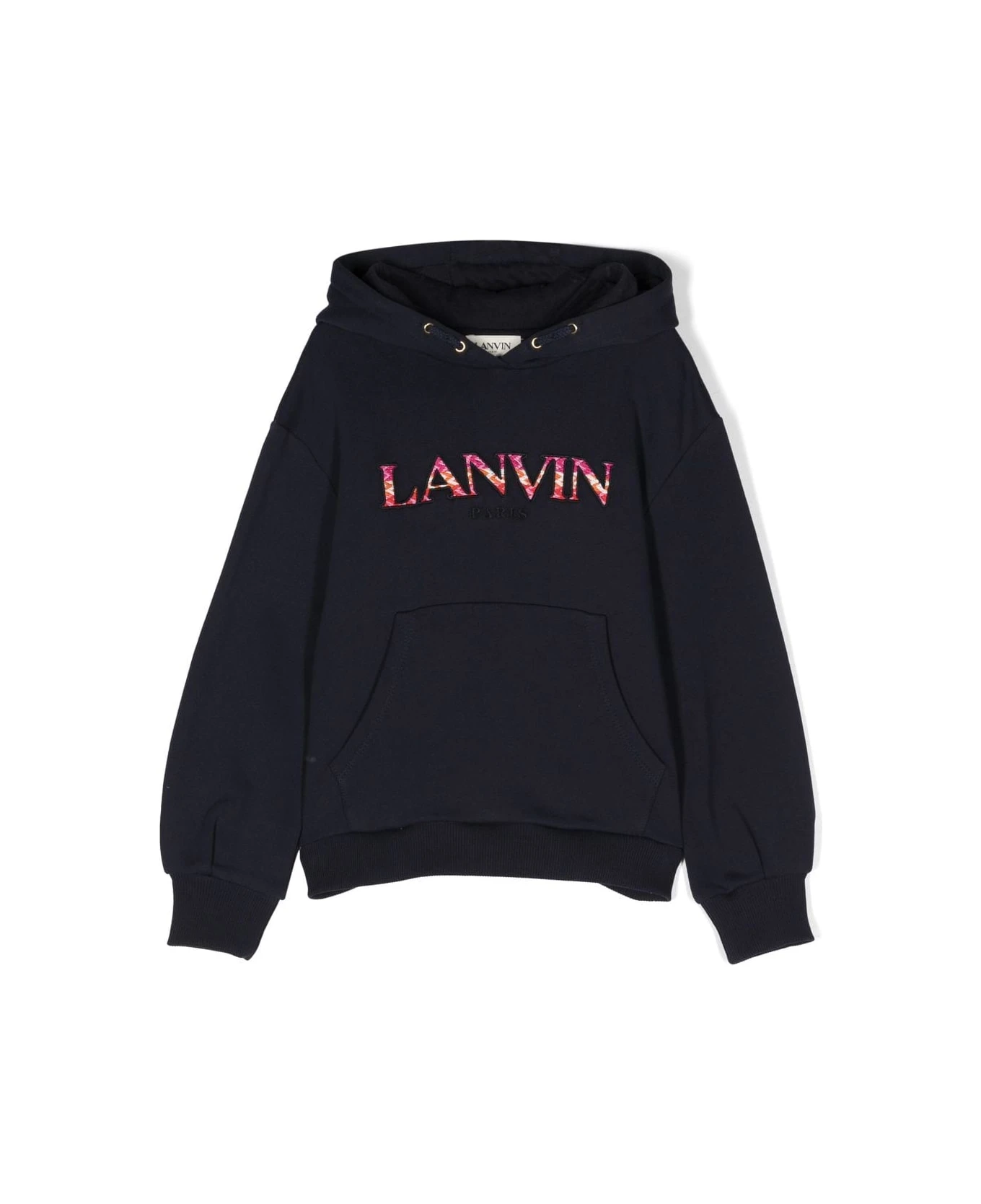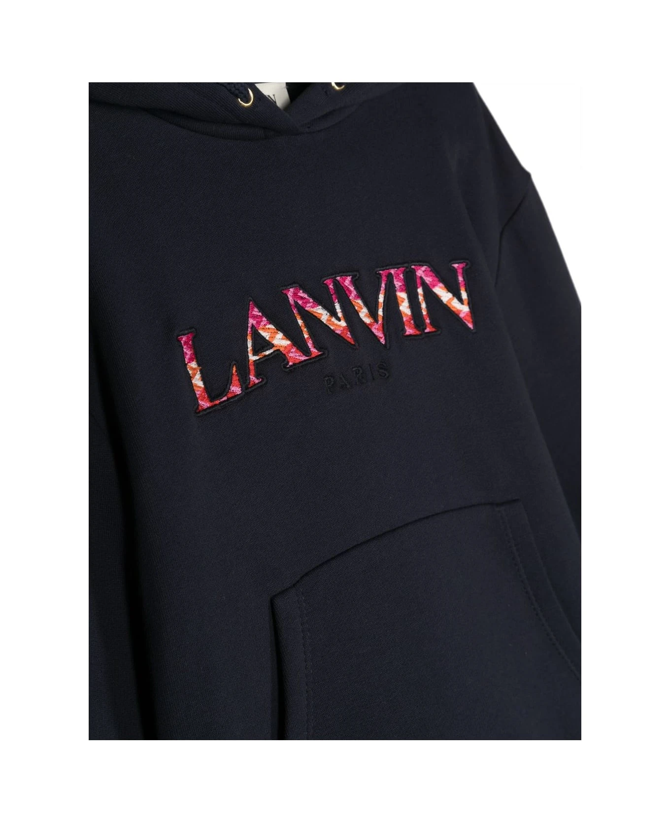 Lanvin Felpa Blu Navy In Cotone Con Cappuccio Bambina from Lanvin