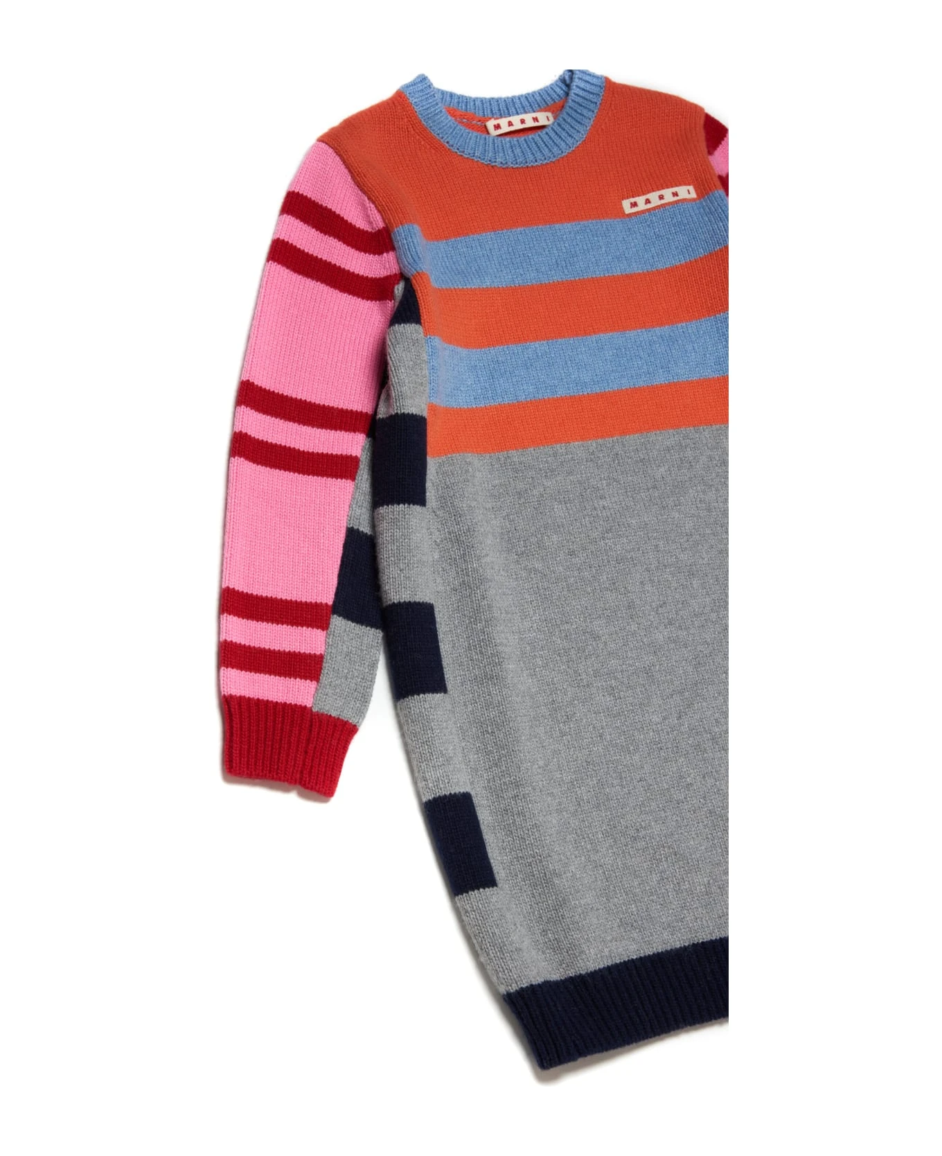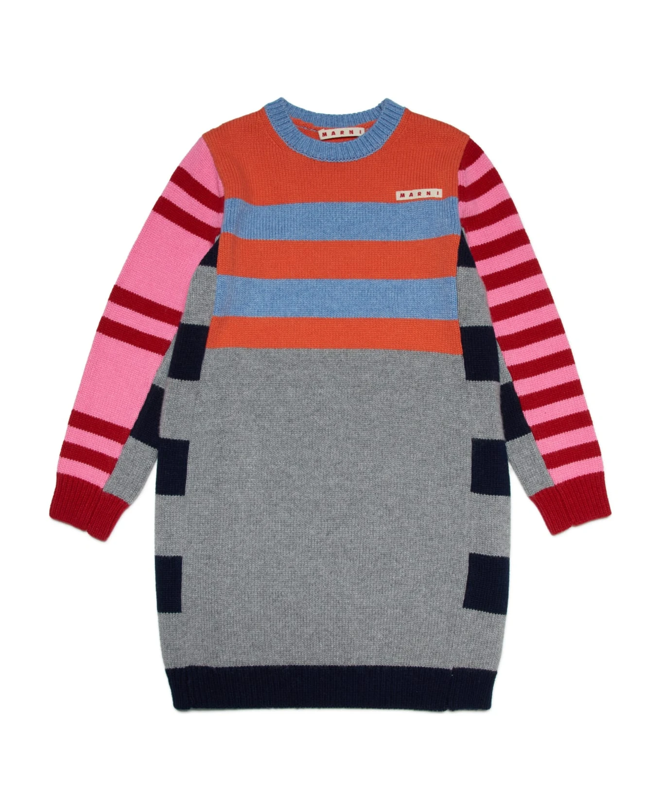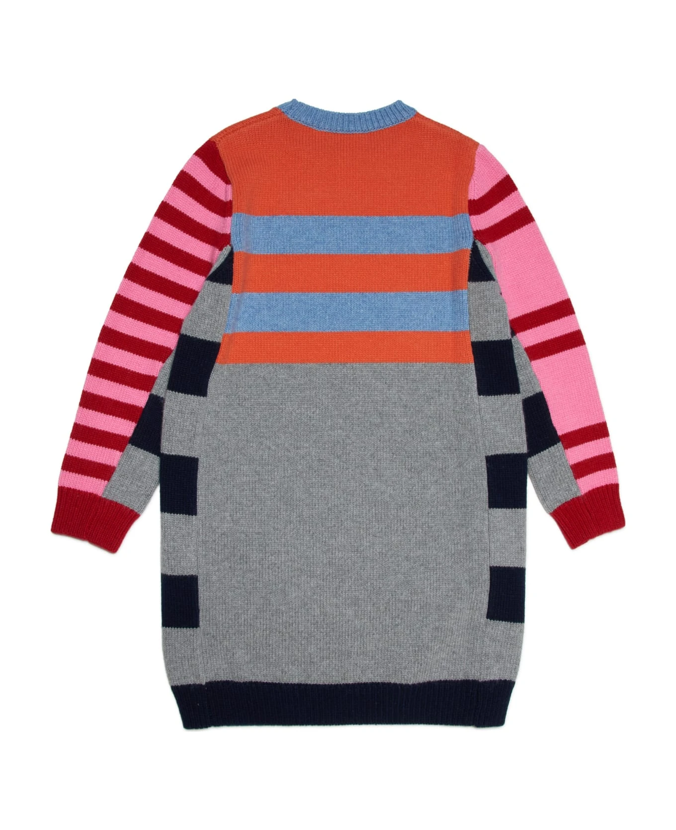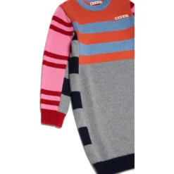 Crew-neck, long-sleeved, wool-blend maxi sweater dress. Features an alternating colorblock stripe pattern and a webbing with logo Institutional logo heart side on the front. A garment full of style, perfect for giving personality to casual looks.
