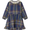 Green and white striped dress, in GOTS certified organic cotton, with shoulder pads and round neckline. It is embellished with panther patch on the bottom.