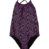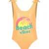 Multicolor one-shoulder swimsuit. It is embellished with “Molo since 2003” writing on the side, for the 20th anniversary of the brand.