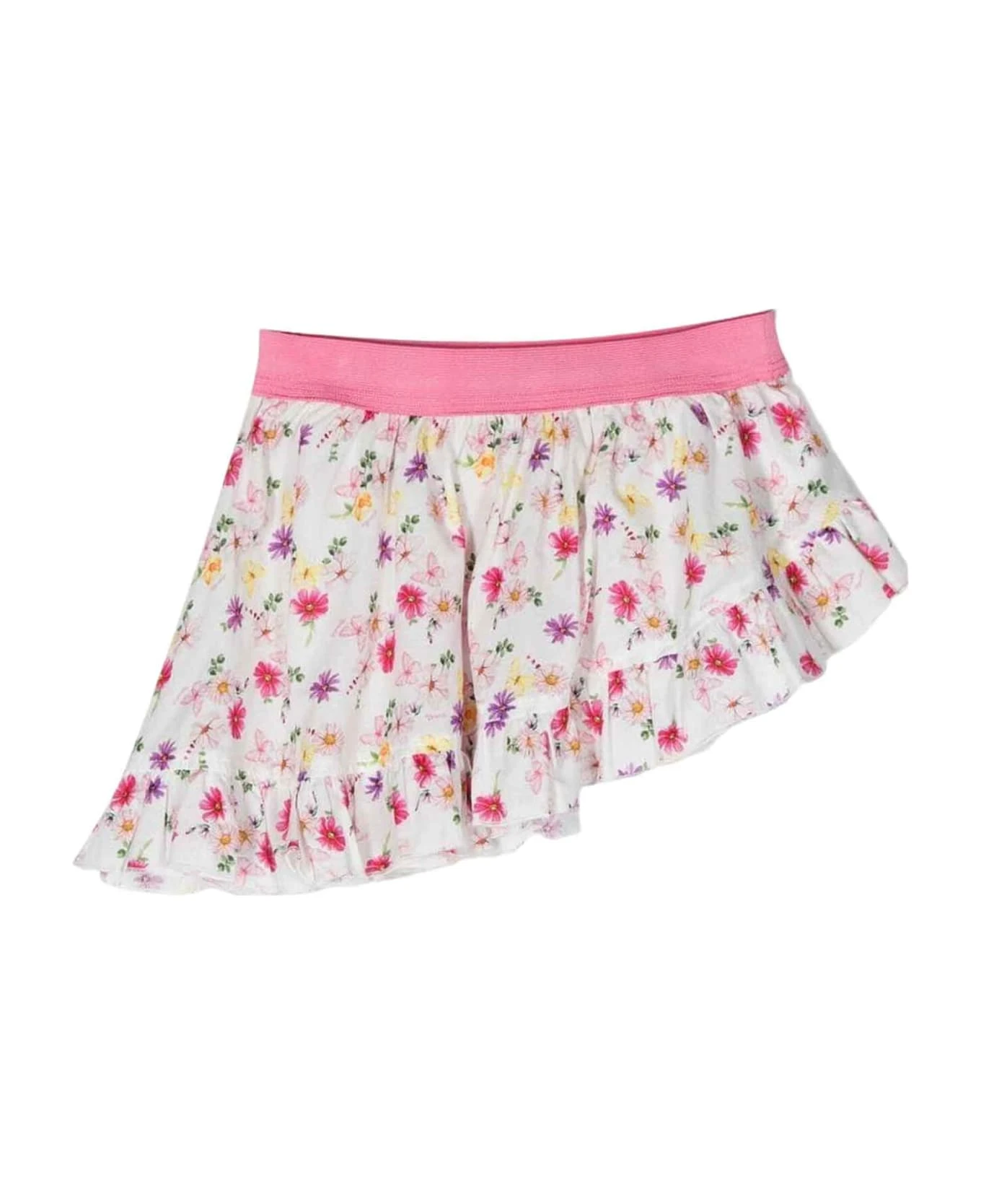 Multicolor skirt girl. Floral print, elasticated waist, asymmetrical design, peplum design and above knee height. 100% Cotton