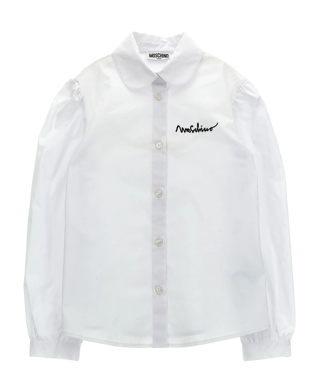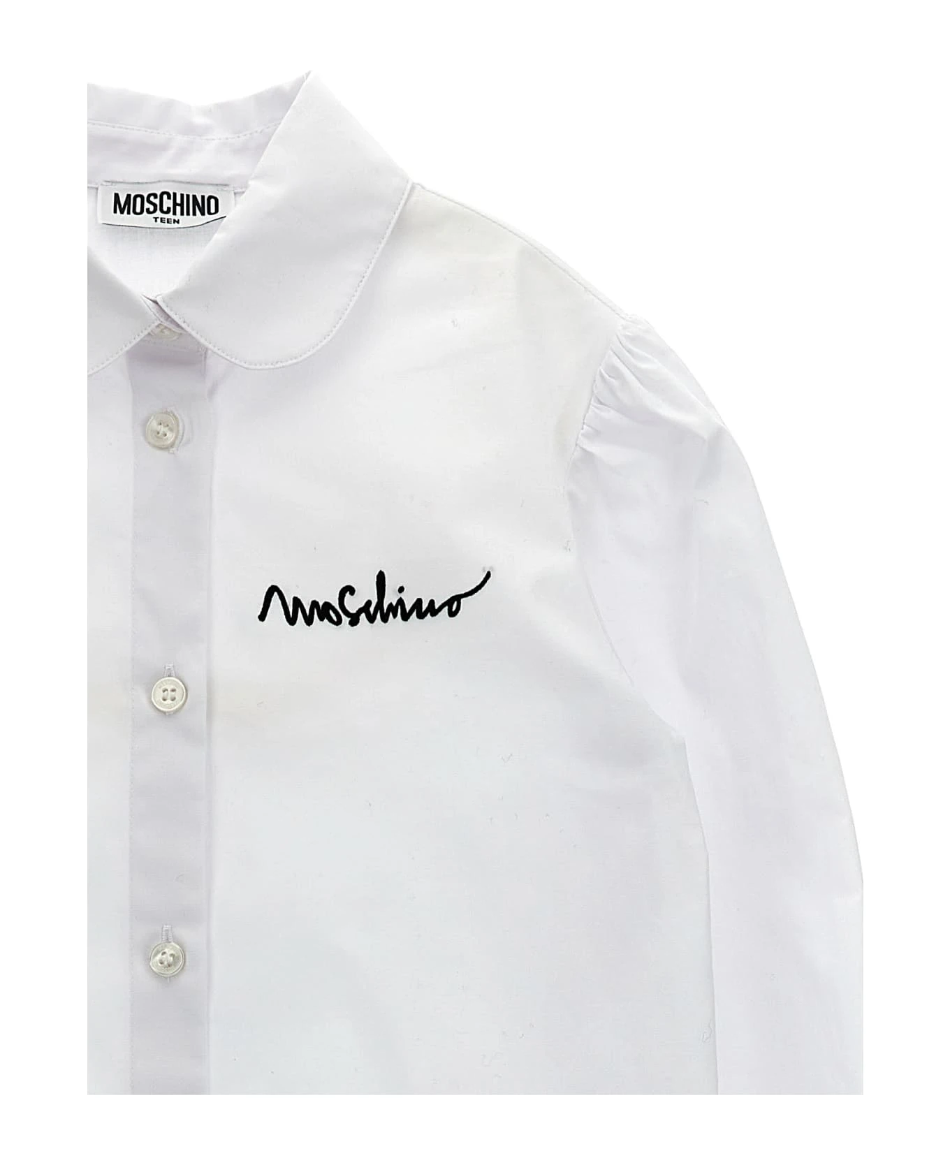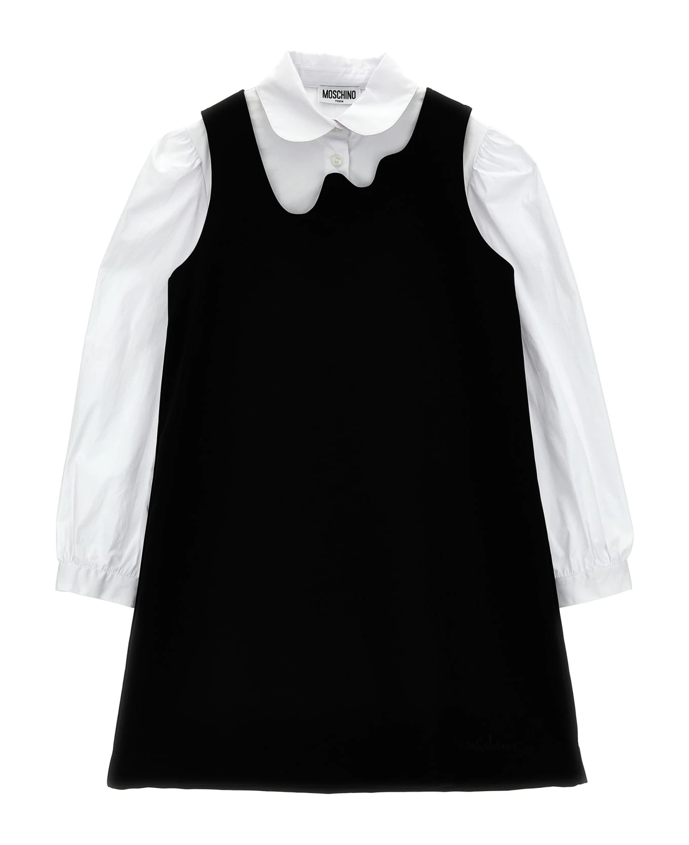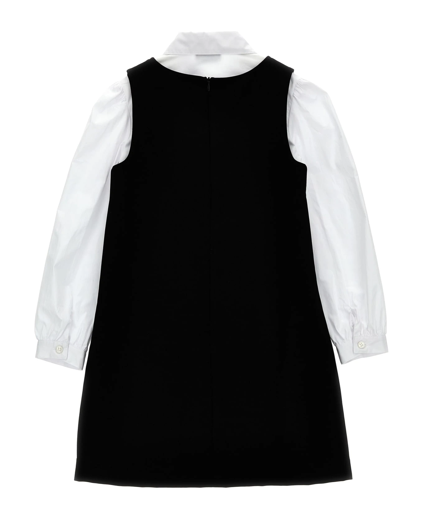 Dress with contoured neckline and zip closure, cotton shirt with front embroidered logo, button closure, long cuffed sleeves.