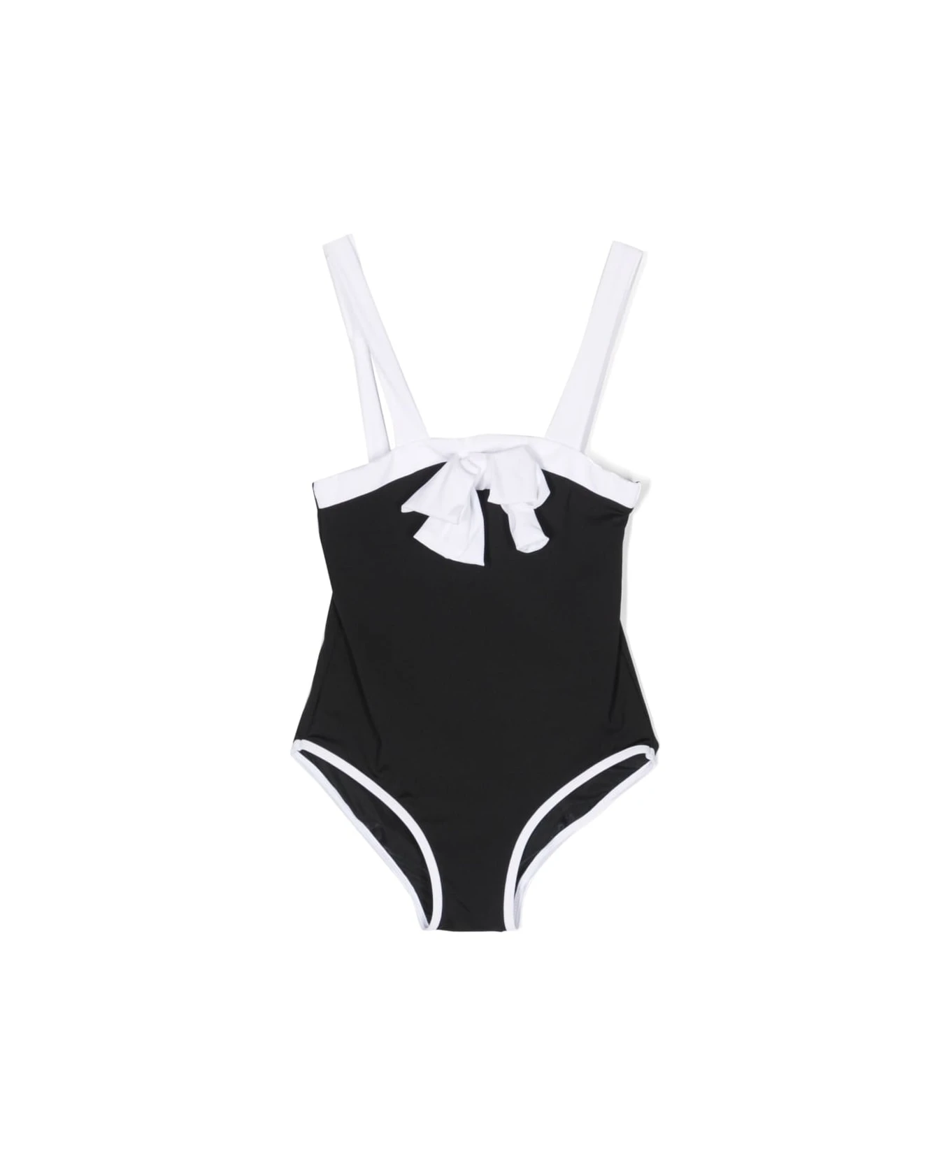 Black/White, one piece design, elasticated design, spaghetti straps, contrast trims and bow detail. Swimwear must be tried on with your own undergarment. Origin: Italy