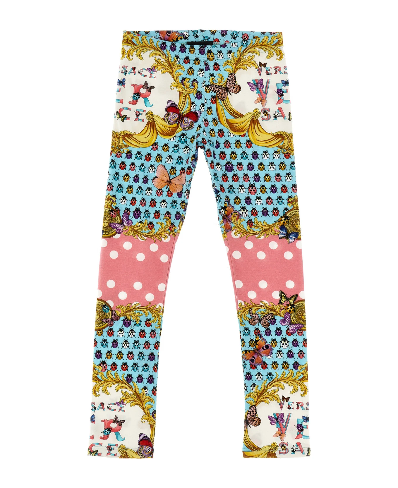 La Vacanza capsule stretch cotton leggings with ‘Heritage Butterflies & Ladybugs Kids’, elastic waistband.